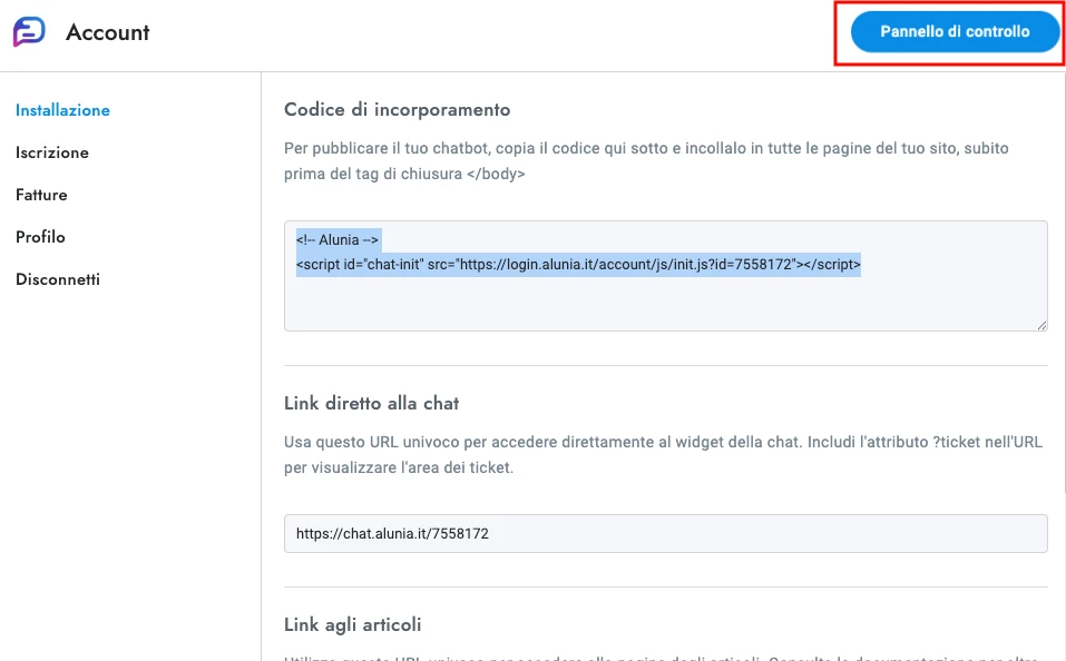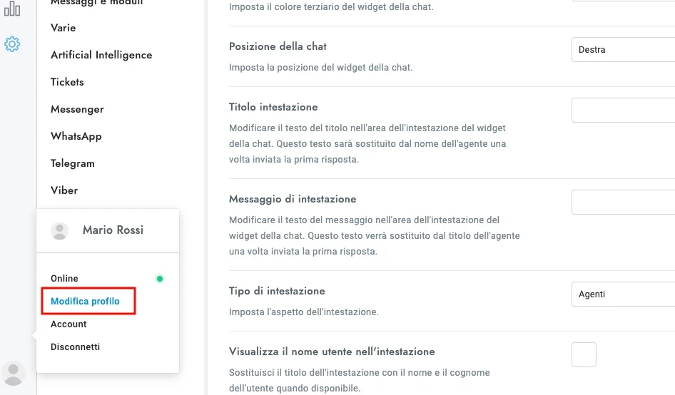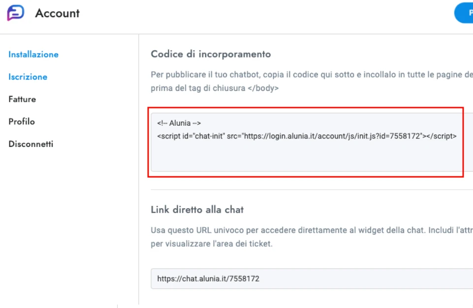 Fino a questo punto, avete seguito la procedura per attivare una chat classica dove un operatore dovrà rispondere al visitatore. Se invece volete attivare le funzionalità di intelligenza artificiale della chat, allora procedete al punto successivo.