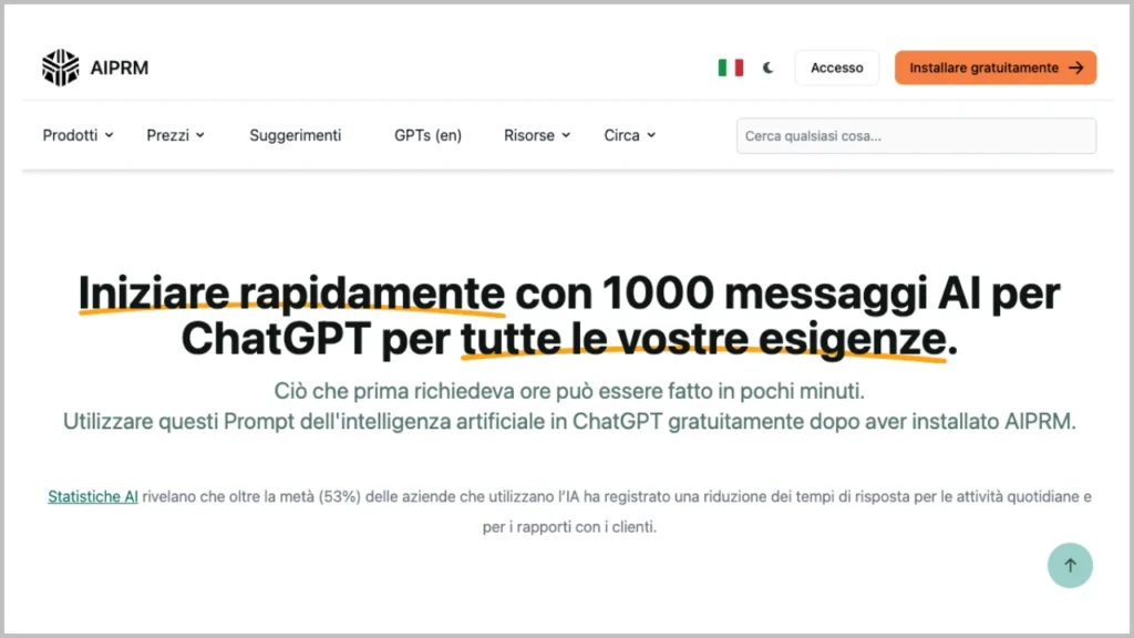 Piattaforma collaborativa dove gli utenti condividono prompt testati, organizzati per settore d’uso. Ideale per trovare ispirazione e casi reali.