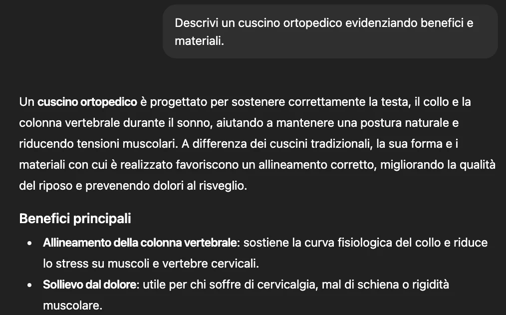 “Descrivi un cuscino ortopedico evidenziando benefici e materiali.”